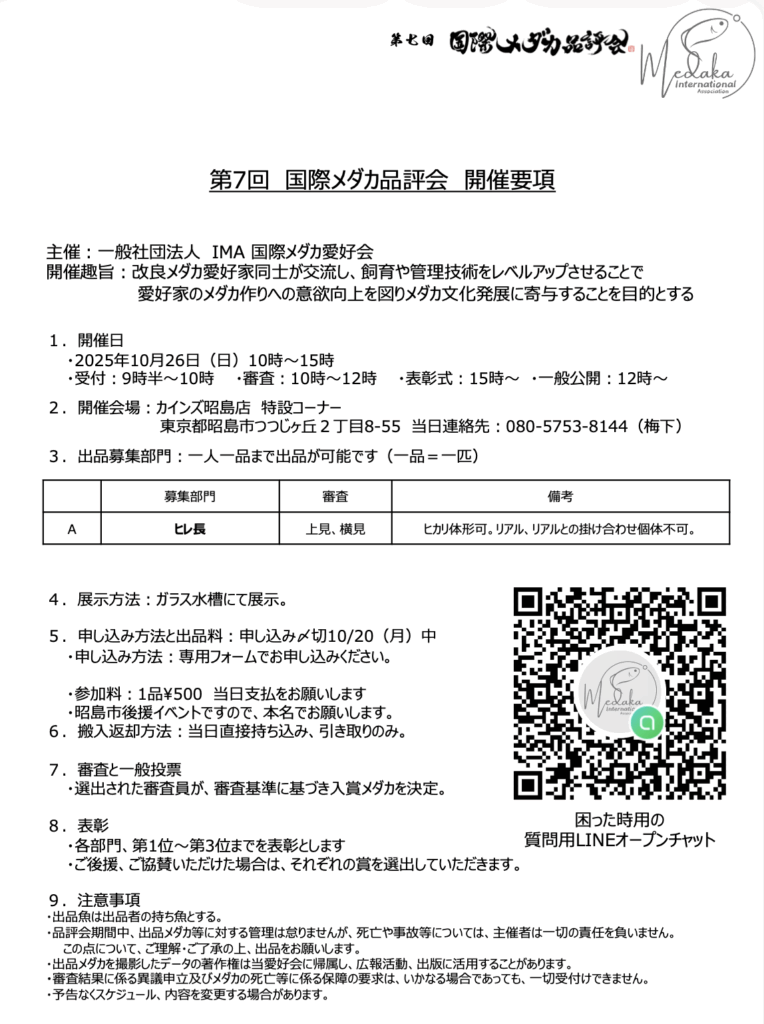 出品・観覧を通じて、改良メダカの魅力を感じていただければ幸いです。